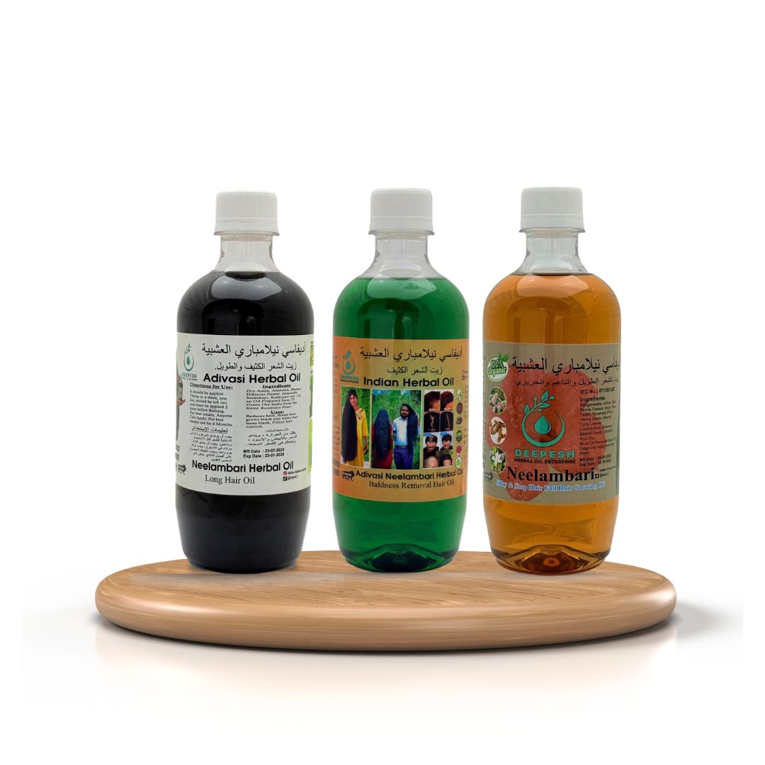 Why settle for one when you can have it all? This exclusive pack contains Sanjeevni for root strengthening, Neelambari for long hair growth, and Bringamalaka for texture and shine. The ultimate holistic approach to total hair wellness in one affordable package.